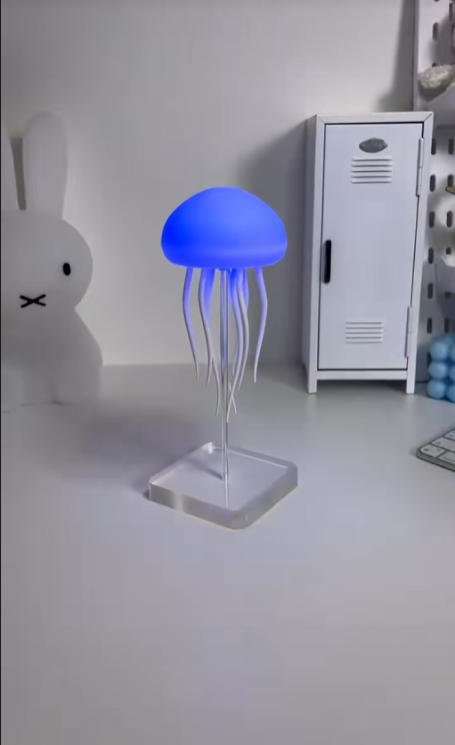 TheLeviJelly is a premium jellyfish-inspired lamp that combines functional LED lighting with stunning visual design. It features a glowing dome top with realistic flowing tentacles that create a calming, oceanic atmosphere in any space.
